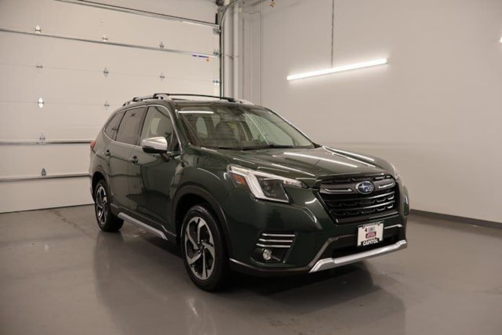 No Payments for 120 days on any New 2025 vehicle only at Capitol Auto Group- with finance terms up to 84 months!! Or any 2023 model or older pre-owned vehicle only at Capitol Auto Group- with finance terms up to 84 months!! Must be a MAPS credit union member to qualify. With an Experian score of 696 or higher. Effective 12-4-2025 through 1-15-2026 See dealer for more qualifying details We Buy cars- Fast, Fair and Easy This 2024 Cascade Green Silica Subaru Forester Touring AWD is well equipped and includes these features and benefits: Standard Model, 3.70 Axle Ratio, 4-Wheel Disc Brakes, 9 Speakers, ABS brakes, Air Conditioning, All-Weather Floor Liners, Alloy wheels, AM/FM radio: SiriusXM, Anti-whiplash front head restraints, Auto High-beam Headlights, Auto-Dimming Exterior Mirror w/Approach Light, Auto-Dimming Mirror w/Compass & HomeLink, Automatic temperature control, Brake assist, Bumpers: body-color, Cargo Net, Crossbar Set - Aero, Driver door bin, Driver vanity mirror, Dual front impact airbags, Dual front side impact airbags, Electronic Stability Control, Emergency communication system: STARLINK Safety and Security (Subscription Required), Exterior Parking Camera Rear, Four wheel independent suspension, Front anti-roll bar, Front Bucket Seats, Front Center Armrest, Front dual zone A/C, Front fog lights, Front reading lights, Fully automatic headlights, harman/kardon 9-Speaker Audio System, harman/kardon® Speakers, Heated door mirrors, Heated Front Bucket Seats, Heated front seats, Heated rear seats, Heated steering wheel, HVAC memory, Illuminated entry, Knee airbag, Leather Shift Knob, Leather steering wheel, Low tire pressure warning, Memory seat, Navigation System, Occupant sensing airbag, Outside temperature display, Overhead airbag, Overhead console, Panic alarm, Passenger door bin, Passenger vanity mirror, Perforated Leather-Trimmed Upholstery, Power door mirrors, Power driver seat, Power Liftgate, Power moonroof: Panoramic, Power passenger seat, Power steering, Power windows, Radio data system, Radio: Subaru STARLINK 8.0" Multimedia Nav System, Rear anti-roll bar, Rear seat center armrest, Rear window defroster, Rear window wiper, Remote keyless entry, Roof rack: rails only, Security system, Speed control, Speed-sensing steering, Split folding rear seat, Spoiler, STARLINK/Apple CarPlay/Android Auto, Steering wheel mounted audio controls, Tachometer, Telescoping steering wheel, Tilt steering wheel, Traction control, Trip computer, Turn signal indicator mirrors, Variably intermittent wipers, and Wheels: 18" x 7.0 J Dark Gray Machine Finish Alloy.