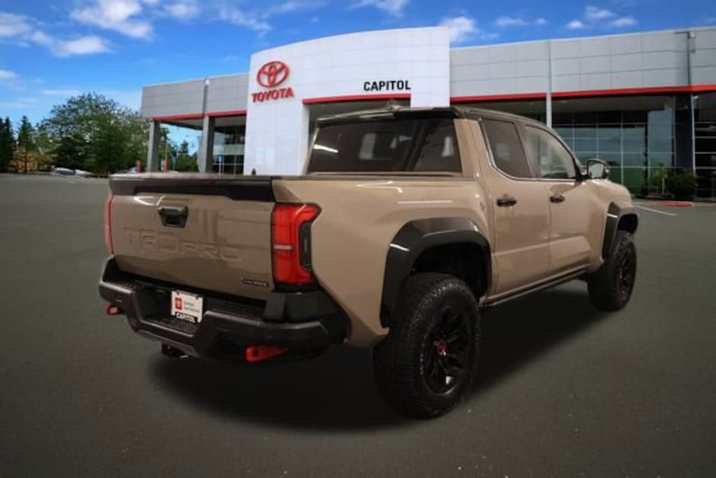 We Buy cars- Fast, Fair and Easy This 2025 Mud Bath w/Black Roof Toyota Tacoma Hybrid TRD Pro 4WD is well equipped and includes these features and benefits: 3.583 Axle Ratio, 4-Wheel Disc Brakes, 9 Speakers, ABS brakes, Air Conditioning, Alloy wheels, AM/FM radio: SiriusXM, Anti-whiplash front head restraints, Apple CarPlay/Android Auto, Auto High-beam Headlights, Auto-dimming Rear-View mirror, Automatic temperature control, Brake assist, Bumpers: body-color, Driver door bin, Driver vanity mirror, Dual front impact airbags, Dual front side impact airbags, Electronic Stability Control, Emergency communication system: Safety Connect (1-year trial), Exterior Parking Camera Rear, Four wheel independent suspension, Front anti-roll bar, Front Bucket Seats, Front Center Armrest, Front dual zone A/C, Front fog lights, Front reading lights, Fully automatic headlights, Garage door transmitter: HomeLink, Heads-Up Display, Heated door mirrors, Heated front seats, Heated steering wheel, Htd & Vent TRD Pro IsoDynamic Performance Seats, Illuminated entry, JBL Premium Audio, Knee airbag, Leather Shift Knob, Leather steering wheel, Low tire pressure warning, Navigation system: Drive Connect (1 year trial) includes Cloud Navigation with real time traffic and Google POI, Occupant sensing airbag, Outside temperature display, Overhead airbag, Overhead console, Panic alarm, Passenger door bin, Passenger vanity mirror, Power door mirrors, Power driver seat, Power moonroof, Power passenger seat, Power steering, Power windows, Radio: 14 Toyota Audio Multimedia, Rear anti-roll bar, Rear step bumper, Rear window defroster, Remote keyless entry, Security system, SofTex Seat Trim, Speed control, Speed-sensing steering, Split folding rear seat, Steering wheel mounted audio controls, Tachometer, Telescoping steering wheel, Tilt steering wheel, Traction control, Trip computer, Turn signal indicator mirrors, Variably intermittent wipers, Ventilated front seats, and Wheels: 18 Black TRD Pro Alloy.