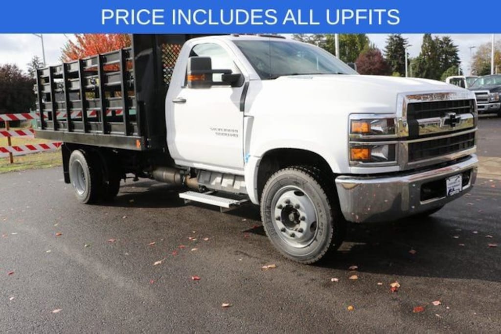 We Buy cars- Fast, Fair and Easy This 2024 Summit White Chevrolet Silverado 5500HD Flat bed with racks RWD is well equipped and includes these features and benefits: ABS brakes, Electronic Stability Control, Traction control, 4.10 Rear Axle Ratio, Air Conditioning, Delay-off headlights, Driver door bin, Dual front impact airbags, Dual front side impact airbags, Dual rear wheels, Exterior Parking Camera Rear, Front Center Armrest w/Storage, Front reading lights, Frontal Passenger-Side Airbag Deactivation Switch, Fully automatic headlights, Occupant sensing airbag, Overhead airbag, Overhead console, Passenger cancellable airbag, Passenger door bin, Power steering, Premium audio system: Chevrolet MyLink, Single-Zone Air Conditioning, Speed control, Tachometer, Tilt steering wheel, Trip computer, Variably intermittent wipers, Voltmeter, and Wheels: 19.5 x 6.75 Black Painted Hub Piloted Steel w/8-Holes.