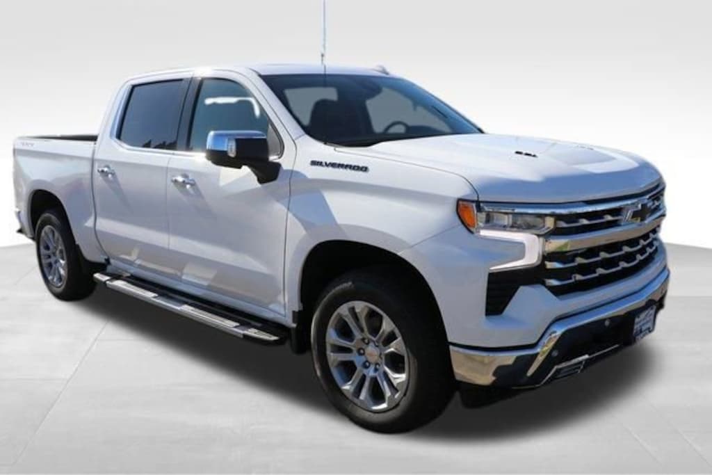 We Buy cars- Fast, Fair and Easy This 2025 Summit White Chevrolet Silverado 1500 LTZ 4WD is well equipped and includes these features and benefits: Dark Essentials Package (LPO) (Black Name Plates (LPO)), High Capacity Suspension Package, LTZ Convenience Package (2 USB Data Ports, Floor Mounted Center Console, Power Tilt & Telescoping Steering Column, Premium Bose 7-Speaker Sound System, Ventilated Driver & Front Passenger Seats, and Wireless Charging), LTZ Convenience Package II (2nd Row Heated Outboard Seats, Adaptive Cruise Control, Power Sliding Rear Window w/Rear Defogger, and Universal Home Remote), LTZ Plus Package, LTZ Premium Package (Power Sunroof), Preferred Equipment Group 1LZ (10-Way Power Driver Seat w/Lumbar, 10-Way Power Passenger Seat Adjuster w/Lumbar, 12.3 Multicolor Reconfigurable Digital Display, 120-Volt Bed Mounted Power Outlet, 120-Volt Interior Power Outlet, Auto-Dimming Inside Rear-View Mirror, Auto-Locking Rear Differential, Bluetooth® For Phone, Chrome Mirror Caps, Color-Keyed Carpeting Floor Covering, Deep-Tinted Glass, Driver Memory, Dual Rear USB Ports (Charge Only), Electric Rear-Window Defogger, Electronic Cruise Control, Front Frame-Mounted Black Recovery Hooks, Front LED Fog Lamps, Front Rain-Sensing Wipers, Front Rubberized Vinyl Floor Mats, Heated Driver & Front Outboard Passenger Seats, Heated Steering Wheel, Hitch Guidance w/Hitch View, In-Vehicle Trailering System App, Integrated Trailer Brake Controller, Keyless Open & Start, LED Cargo Area Lighting, OnStar Services Capable, Outside Heated Power-Adjustable Mirrors, Power Front Passenger Windows w/Express Up/Down, Power Front Windows w/Driver Express Up/Down, Power Rear Windows w/Express Down, Power Tailgate, Rear Rubberized-Vinyl Floor Mats, Rear Wheelhouse Liners, Remote Vehicle Starter System, SiriusXM w/360L Trial Subscription, Standard Tailgate, Steering Wheel Audio Controls, Teen Driver, Theft Deterrent System (Unauthorized Entry), Tire Pressure Monitoring System, Wi-Fi Hot Spot Capable, and Wrapped Steering Wheel), Safety Package (HD Surround Vision, Perimeter Lighting, Rear Cross Traffic Braking, Rear Pedestrian Alert, Safety Alert Seat, Trailer Camera Provisions, Trailer Side Blind Zone Alert, and Ultrasonic Front & Rear Park Assist), Technology Package (15 Diagonal Multicolor Head-Up Display, Bed View Camera, and Rear Camera Mirror), Trailering Package (Hitch Guidance), Up-Level Rear Seat w/Storage Package, 170 Amp Alternator, 3.23 Rear Axle Ratio, 4-Wheel Disc Brakes, 6 Rectangular Chrome Tubular Assist Steps (LPO), 7 Speakers, ABS brakes, Air Conditioning, Alloy wheels, AM/FM radio: SiriusXM with 360L, Apple CarPlay/Android Auto, Auto High-beam Headlights, Auto-dimming door mirrors, Auto-dimming Rear-View mirror, Automatic Emergency Braking, Automatic temperature control, Black Tailgate CHEVROLET Lettering (LPO), Brake assist, Bumpers: chrome, Compass, Delay-off headlights, Driver door bin, Driver vanity mirror, Dual Active Exhaust, Dual front impact airbags, Dual front side impact airbags, Electronic Stability Control, Electronic Transmission Range Selector Shifter, Emergency communication system: OnStar, Following Distance Indicator, Forward Collision Alert, Front anti-roll bar, Front Black Bowtie Emblem (LPO), Front Bucket Seats, Front Center Armrest, Front dual zone A/C, Front fog lights, Front License Plate Kit, Front Pedestrian Braking, Front reading lights, Front wheel