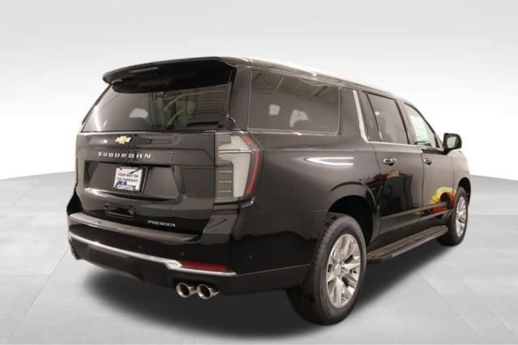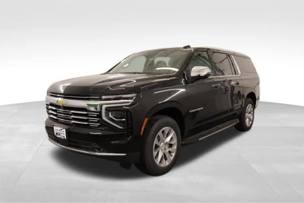 We Buy cars- Fast, Fair and Easy This 2025 Black Chevrolet Suburban Premier 4WD is well equipped and includes these features and benefits: Advanced Trailering Package (Blind Zone Steering Assist w/Trailering, Hitch View w/Pan/Zoom Image Adjustment, and Smart Trailer Integration Indicator), License Plate Front Mounting Package, Max Trailering Package (2-Speed Active Electronic AutoTrac Transfer Case, Hill Descent Control, and Integrated Trailer Brake Controller), Preferred Equipment Group 1LZ (3rd Row 60/40 Power-Folding Split-Bench, 4-Way Power Driver Lumbar Seat Adjuster, 4-Way Power Front Passenger Lumbar Seat Adjuster, 8-Way Power Front Passenger Seat Adjuster, Auto-Dimming Inside Rear-View Mirror, Bose 10-Speaker Surround w/CenterPoint, Bright Front & Rear Door Sill Plates, Chrome Door Handles w/Body-Color Strip, Dual Exhaust System, Front LED Fog Lamps, Heated 2nd Row Outboard Seats, Heated Driver & Front Passenger Seats, Heated Power-Adjustable Outside Mirrors, Heated Steering Wheel, LED Headlamps w/LED Daytime Running Lamps, LED Tail Lamps, Memory Settings, Perforated Heated & Ventilated Seats, Power Release 2nd Row Bucket Seats, Power Tilt & Telescopic Steering Column, Power-Sliding Center Floor Console, Rear Power Liftgate, Universal Home Remote, and Wireless Phone Charging), Sun & Tow Package (Dual-Pane Power Panoramic Sunroof), 10 Speakers, 20 x 9 Polished Aluminum Wheels, 3.23 Rear Axle Ratio, 3rd row seats: split-bench, 4-Wheel Disc Brakes, 8-Way Power Driver Seat Adjuster, ABS brakes, Adaptive suspension, Air Conditioning, Alloy wheels, AM/FM radio: SiriusXM with 360L, Apple CarPlay/Android Auto, Auto High-beam Headlights, Auto-dimming door mirrors, Auto-dimming Rear-View mirror, Auto-leveling suspension, Automatic temperature control, Brake assist, Bumpers: body-color, Compass, Delay-off headlights, Driver door bin, Driver vanity mirror, Dual front impact airbags, Dual front side impact airbags, Electronic Stability Control, Emergency communication system: OnStar Services capable, Exterior Parking Camera Rear, Extra Capacity Cooling System, Four wheel independent suspension, Front anti-roll bar, Front Bucket Seats, Front Center Armrest, Front dual zone A/C, Front fog lights, Front reading lights, Fully automatic headlights, Garage door transmitter, Heated door mirrors, Heated front seats, Heated rear seats, Heated steering wheel, Illuminated entry, Low tire pressure warning, Magnetic Ride Control Suspension, Memory seat, Navigation system: Google built-in compatibility (select service plan required, terms and limitations apply), Occupant sensing airbag, Outside temperature display, Overhead airbag, Overhead console, Panic alarm, Passenger door bin, Passenger vanity mirror, Perforated Leather Seating Surfaces, Power door mirrors, Power driver seat, Power Liftgate, Power passenger seat, Power steering, Power windows, Radio data system, Radio: 17.7 Diagonal Advanced Color LCD Display, Rain sensing wipers, Rear air conditioning, Rear anti-roll bar, Rear reading lights, Rear window defroster, Rear window wiper, Remote keyless entry, Security system, SiriusXM w/360L Trial Subscription, Speed control, Speed-sensing steering, Split folding rear seat, Spoiler, Steering wheel memory, Steering wheel mounted audio controls, Tachometer, Telescoping steering wheel, Tilt steering wheel, Traction control, Trip computer, Turn signal indicator mirrors, Variably intermittent wipers, Ventilated front seats, Voltmeter, and Wirel