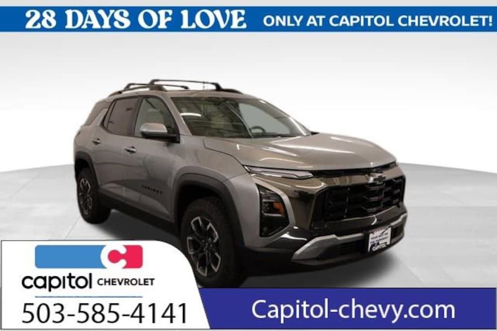 We Buy cars- Fast, Fair and Easy This 2026 Sterling Gray Metallic Chevrolet Equinox ACTIV AWD is well equipped and includes these features and benefits: Convenience Package III (Front Passenger 2-Way Power Lumbar Seat Adjuster, Front Passenger 8-Way Power Seat Adjuster, Heated Rear Outboard Seating Positions, Memory Settings, Ventilated Driver Seat, and Ventilated Front Passenger Seat), Preferred Equipment Group KDZ, Safety and Technology Package (Front Fog Lamps, HD Surround Vision, Rear Pedestrian Alert, and Traffic Sign Recognition), 2-Way Power Driver Lumbar Control Seat Adjuster, 3.47 Final Drive Axle Ratio, 4-Wheel Disc Brakes, 6 Speakers, ABS brakes, Air Conditioning, Alloy wheels, AM/FM radio: SiriusXM, Auto High-beam Headlights, Automatic temperature control, Brake assist, Bumpers: body-color, Compass, Delay-off headlights, Driver 8-Way Power Seat Adjuster, Driver door bin, Driver vanity mirror, Dual front impact airbags, Dual front side impact airbags, Electronic Stability Control, Emergency communication system: OnStar and Chevrolet connected services capable, Four wheel independent suspension, Front anti-roll bar, Front Bucket Seats, Front Center Armrest, Front dual zone A/C, Front Passenger 4-Way Manual Seat Adjuster, Front reading lights, Fully automatic headlights, Garage door transmitter, Heated door mirrors, Heated Driver and Front Passenger Seats, Heated front seats, Heated steering wheel, Illuminated entry, Low tire pressure warning, Navigation System, Occupant sensing airbag, Outside temperature display, Overhead airbag, Overhead console, Panic alarm, Passenger door bin, Passenger vanity mirror, Power door mirrors, Power driver seat, Power Dual Glass Panoramic Sliding Sunroof, Power Liftgate, Power steering, Power windows, Premium audio system: Chevrolet Infotainment 3 Plus, Radio data system, Radio: 11.3 Diagonal Advanced Color LCD Display, Rain sensing wipers, Rear anti-roll bar, Rear Camera Mirror Washer, Rear reading lights, Rear seat center armrest, Rear window defroster, Rear window wiper, Remote keyless entry, Roof Rack Cross Rails, Security system, SiriusXM with 360L Trial Subscription, Speed control, Speed-sensing steering, Split folding rear seat, Spoiler, Steering wheel mounted audio controls, Sueded Microfiber Seat Trim, Tachometer, Telescoping steering wheel, Tilt steering wheel, Traction control, Trip computer, Variably intermittent wipers, and Wheels: 17 Dark Android Painted Machined-Face.