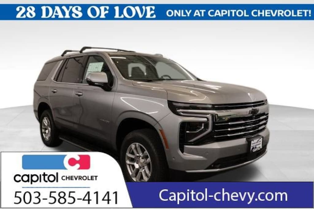 We Buy cars- Fast, Fair and Easy This 2026 Sterling Gray Metallic Chevrolet Tahoe LT 4WD is well equipped and includes these features and benefits: Comfort Package (2nd Row Power Release 60/40 Split-Folding Bench Seat, 3rd Row 60/40 Power-Folding Split-Bench Seat, Bose 10-Speaker Centerpoint Surround Audio System Feature, Heated 2nd Row Outboard Seats, Heated Steering Wheel, LED Headlamps with LED Daytime Running Lamps, LED Tail Lamps, Memory Settings, and Outside Heated Power-Adjustable Mirrors), Hit the Road Package (Black Roof Rack Cross Rails and Console Mounted Safe), License Plate Front Mounting Package, Luxury Package (Auto-Dimming Inside Rear-View Mirror, Front LED Fog Lamps, and Universal Home Remote), Preferred Equipment Group 1LT (1st and 2nd Row Color-Keyed Carpeted Floor Mats, 3-Spoke Wrapped Steering Wheel, 3rd Row Manual 60/40 Split-Folding Bench Seats, Color-Keyed Carpeting Floor Covering, Floor Console with Storage Area, Front Bucket Seats, Frontal Driver and Outboard Passenger Airbags, Interior Camera, Key Card, Memory Settings For Driver, Rear Power Liftgate, Remote Start, SiriusXM with 360L Trial Subscription, USB Ports, and Wireless Phone Charging), 2-Way Power Driver Lumbar Seat Adjuster, 2-Way Power Front Passenger Lumbar Seat Adjuster, 3.23 Rear Axle Ratio, 3rd row seats: split-bench, 4-Wheel Disc Brakes, 6 Speakers, 6-Speaker Audio System Feature, 8-Way Power Driver Seat Adjuster, 8-Way Power Front Passenger Seat Adjuster, ABS brakes, Air Conditioning, Alloy wheels, AM/FM radio: SiriusXM with 360L, Apple CarPlay/Android Auto, Auto High-beam Headlights, Automatic temperature control, Black Illuminated Front Bowtie Emblem, Brake assist, Bumpers: body-color, Compass, Delay-off headlights, Driver door bin, Driver vanity mirror, Dual front impact airbags, Dual front side impact airbags, Electronic Stability Control, Emergency communication system: OnStar and Chevrolet connected services capable, Exterior Parking Camera Rear, Four wheel independent suspension, Front anti-roll bar, Front Center Armrest, Front dual zone A/C, Front reading lights, Fully automatic headlights, Heated door mirrors, Heated Driver and Front Passenger Seats, Heated front seats, Illuminated entry, Leather-Appointed Seat Trim, Low tire pressure warning, Memory seat, Navigation system: Google built-in compatibility (select service plan required, terms and limitations apply), Occupant sensing airbag, Outside temperature display, Overhead airbag, Overhead console, Panic alarm, Passenger door bin, Passenger vanity mirror, Power door mirrors, Power driver seat, Power Liftgate, Power passenger seat, Power steering, Power windows, Premium audio system: Chevrolet Infotainment 3 Premium, Premium Smooth Ride Suspension, Radio data system, Radio: 17.7 Diagonal Advanced Color LCD Display, Rain sensing wipers, Rear air conditioning, Rear anti-roll bar, Rear reading lights, Rear seat center armrest, Rear window defroster, Rear window wiper, Remote keyless entry, Security system, Speed control, Speed-sensing steering, Split folding rear seat, Spoiler, Steering wheel mounted audio controls, Tachometer, Telescoping steering wheel, Tilt steering wheel, Traction control, Trip computer, Variably intermittent wipers, Voltmeter, and Wheels: 18 x 8.5 Bright Silver Painted Aluminum.