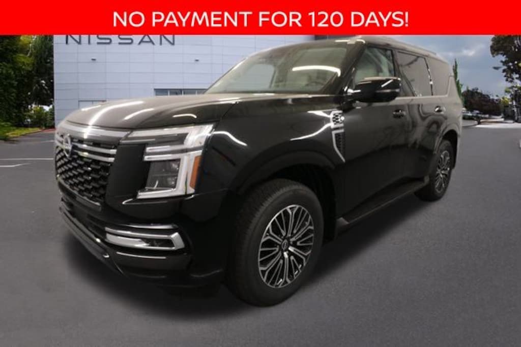 We Buy cars- Fast, Fair and Easy This 2025 Super Black Nissan Armada Platinum 4WD is well equipped and includes these features and benefits: ProPILOT Assist 2.1 (PLATINUM Grade) (Heads-Up Display), 4WD, 12 Speakers, 20" Painted Alloy Wheels, 3rd row seats: split-bench, 4-Wheel Disc Brakes, ABS brakes, Air Conditioning, Alloy wheels, AM/FM radio: SiriusXM, Anti-whiplash front head restraints, Auto High-beam Headlights, Auto tilt-away steering wheel, Auto-dimming door mirrors, Auto-dimming Rear-View mirror, Auto-leveling suspension, Automatic temperature control, Brake assist, Bumpers: body-color, Carpeted Floor Mats - Captain Chairs, Center Front Spoiler, Climate Controlled Heated & Ventilated Front Seats, Delay-off headlights, Driver door bin, Driver vanity mirror, Dual front impact airbags, Dual front side impact airbags, Electronic Stability Control, Emergency communication system: NissanConnect Services, Four wheel independent suspension, Front anti-roll bar, Front Bucket Seats, Front Center Armrest, Front dual zone A/C, Front fog lights, Front reading lights, Fully automatic headlights, Garage door transmitter: myQ Connected Garage, Genuine wood dashboard insert, Heated door mirrors, Heated front seats, Heated rear seats, Heated steering wheel, HVAC memory, Illuminated entry, Illuminated Kick Plates, Knee airbag, Leather steering wheel, Low tire pressure warning, Memory seat, Navigation System, Occupant sensing airbag, Outside temperature display, Overhead airbag, Overhead console, Panic alarm, Passenger door bin, Passenger vanity mirror, Power door mirrors, Power driver seat, Power Liftgate, Power moonroof, Power passenger seat, Power steering, Power windows, Quilted Leather Seat Trim, Radio: NissanConnect w/SiriusXM 360L, Rain sensing wipers, Rear air conditioning, Rear anti-roll bar, Rear Bumper Protector, Rear reading lights, Rear window defroster, Rear window wiper, Reclining 3rd row seat, Remote keyless entry, Roof Rail Cross Bars, Security system, Speed control, Speed-sensing steering, Speed-Sensitive Wipers, Splash Guards, Split folding rear seat, Spoiler, Steering wheel memory, Steering wheel mounted audio controls, Tachometer, Telescoping steering wheel, Tilt steering wheel, Traction control, Trip computer, Turn signal indicator mirrors, Variably intermittent wipers, Ventilated front seats, and Voltmeter. 4WD.