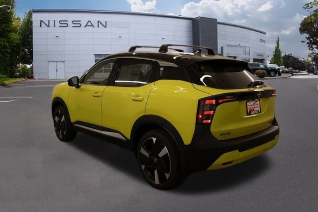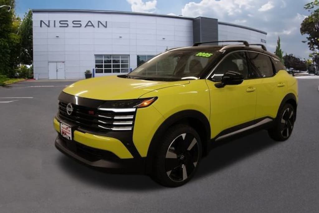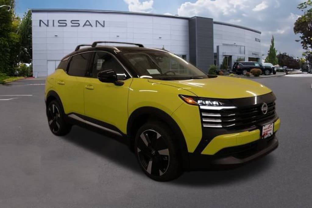 We Buy cars- Fast, Fair and Easy This 2025 Yuzu Yellow Metallic/Super Black Nissan Kicks SR AWD is well equipped and includes these features and benefits: SR Premium Package (Bose 10 -Speaker Audio, Driver Seat-Mounted Supplemental Air Bag, Heated Front Seats, Heated Steering Wheel, Panoramic Moonroof, Rain Sensing Wipers, and Remote Engine Start), 17" Alloy Wheels, 19" Alloy Wheels, 2-Tone Premium Paint, 4-Wheel Disc Brakes, 6 Speakers, ABS brakes, Air Conditioning, Alloy wheels, AM/FM radio: Sirius, Auto High-beam Headlights, Automatic temperature control, Brake assist, Bumpers: body-color, Carpeted Floor Mats, Cloth/Leatherette Seat Trim, Crossbars, Delay-off headlights, Driver door bin, Driver vanity mirror, Dual front impact airbags, Dual front side impact airbags, Electronic Stability Control, Four wheel independent suspension, Front anti-roll bar, Front Bucket Seats, Front Center Armrest, Front reading lights, Fully automatic headlights, Heated door mirrors, Illuminated entry, Knee airbag, Leather Shift Knob, Leather steering wheel, Low tire pressure warning, Occupant sensing airbag, Outside temperature display, Overhead airbag, Overhead console, Panic alarm, Passenger door bin, Passenger vanity mirror, Power door mirrors, Power steering, Power windows, Radio data system, Radio: AM/FM Audio System, Rear anti-roll bar, Rear reading lights, Rear seat center armrest, Rear side impact airbag, Rear window defroster, Rear window wiper, Remote keyless entry, Security system, Speed control, Speed-sensing steering, Splash Guards, Split folding rear seat, Spoiler, Sport steering wheel, Steering wheel mounted audio controls, Tachometer, Telescoping steering wheel, Tilt steering wheel, Traction control, Trip computer, Turn signal indicator mirrors, Variably intermittent wipers, and Wireless Apple CarPlay/Wireless Android Auto.