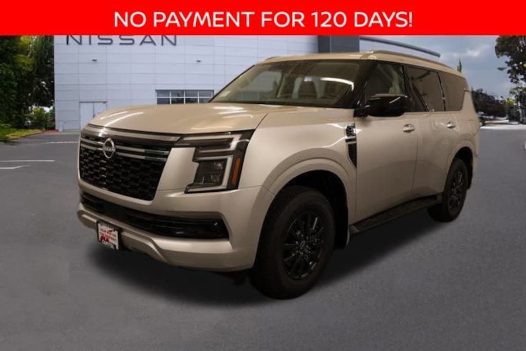 We Buy cars- Fast, Fair and Easy This 2026 Brilliant Silver Metallic Nissan Armada SV 4WD is well equipped and includes these features and benefits: 4WD, 18" x 8J Alloy Wheels, 3rd row seats: split-bench, 4-Wheel Disc Brakes, 6 Speakers, ABS brakes, Air Conditioning, Alloy wheels, AM/FM radio: SiriusXM w/360L, Anti-whiplash front head restraints, Apple CarPlay/Android Auto, Auto High-beam Headlights, Auto-leveling suspension, Automatic temperature control, Brake assist, Bumpers: body-color, Carpeted Floor Mats with Bench Seat, Compass, Delay-off headlights, Driver door bin, Driver vanity mirror, Dual front impact airbags, Dual front side impact airbags, Electronic Stability Control, Emergency communication system: NissanConnect Services, Four wheel independent suspension, Front anti-roll bar, Front Bucket Seats, Front Center Armrest, Front dual zone A/C, Front reading lights, Fully automatic headlights, Garage door transmitter: myQ Connected Garage, HVAC memory, Illuminated entry, Knee airbag, Leather steering wheel, Leatherette Seat Trim, Low tire pressure warning, Occupant sensing airbag, Outside temperature display, Overhead airbag, Overhead console, Panic alarm, Passenger door bin, Passenger vanity mirror, Power door mirrors, Power driver seat, Power passenger seat, Power steering, Power windows, Radio: NissanConnect with SiriusXM 360L, Rain sensing wipers, Rear air conditioning, Rear anti-roll bar, Rear reading lights, Rear seat center armrest, Rear window defroster, Rear window wiper, Reclining 3rd row seat, Remote keyless entry, Security system, Speed control, Speed-sensing steering, Speed-Sensitive Wipers, Splash Guards, Split folding rear seat, Spoiler, Steering wheel mounted audio controls, Tachometer, Telescoping steering wheel, Tilt steering wheel, Traction control, Trip computer, Variably intermittent wipers, and Voltmeter. 4WD.