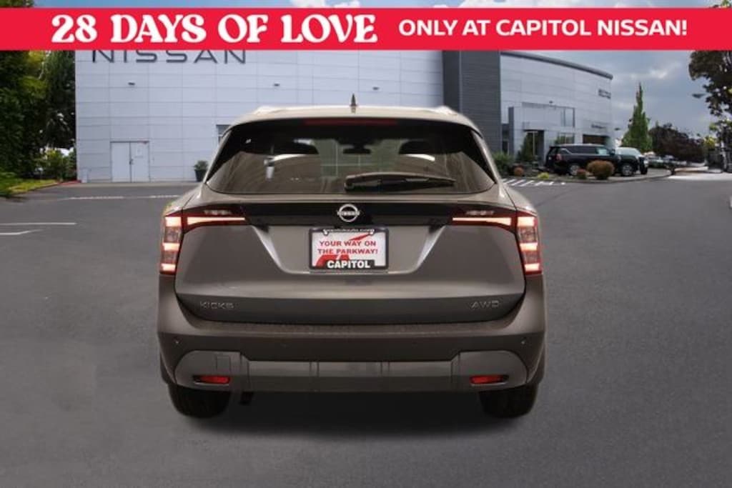 We Buy cars- Fast, Fair and Easy This 2026 Gun Metallic Nissan Kicks SV AWD is well equipped and includes these features and benefits: Cold Weather Package (Heated Front Seats, Heated Mirrors, and Rear Floor Heater Ducts), SV Premium Package (Illuminated Driver & Passenger Sun Visors, Panoramic Moonroof, and Sunglass Holder), 17" Alloy Wheels, 4 Speakers, 4-Wheel Disc Brakes, ABS brakes, Air Conditioning, Alloy wheels, AM/FM radio, Auto High-beam Headlights, Automatic temperature control, Blind Spot Warning, Brake assist, Bumpers: body-color, Carpeted Floor Mats, Cloth Seat Trim, Driver door bin, Driver vanity mirror, Dual front impact airbags, Dual front side impact airbags, Electronic Stability Control, Emergency communication system, Exterior Parking Camera Rear, Four wheel independent suspension, Front anti-roll bar, Front Bucket Seats, Front Center Armrest, Front reading lights, Fully automatic headlights, Illuminated entry, Knee airbag, Low tire pressure warning, NissanConnect featuring Apple CarPlay and Android Auto, Occupant sensing airbag, Outside temperature display, Overhead airbag, Panic alarm, Panoramic Headliner Illumination, Passenger door bin, Passenger vanity mirror, Power door mirrors, Power steering, Power windows, Radio data system, Radio: AM/FM/SiriusXM Audio System, Rear anti-roll bar, Rear reading lights, Rear side impact airbag, Rear window defroster, Rear window wiper, Remote keyless entry, Security system, Speed control, Speed-sensing steering, Splash Guards, Split folding rear seat, Spoiler, Sport steering wheel, Steering wheel mounted audio controls, Tachometer, Telescoping steering wheel, Tilt steering wheel, Traction control, Trip computer, and Variably intermittent wipers.