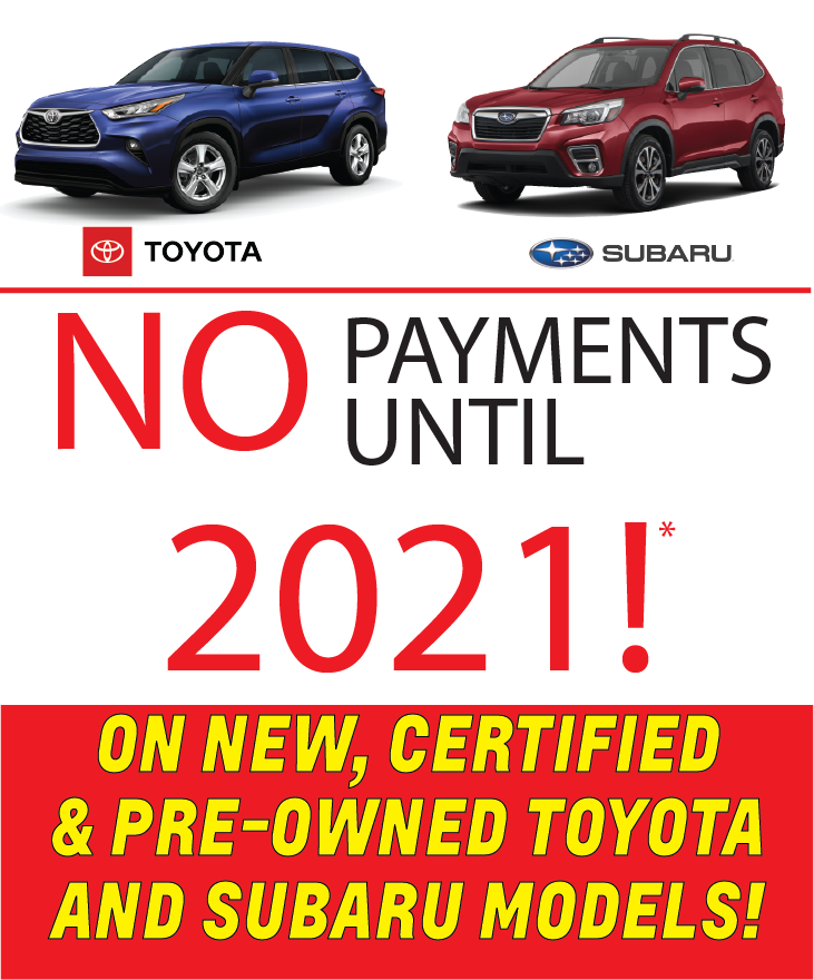 *No payments until 2021 on approved credit though SELCO on 690 beacon or higher, interest accrues at time of inception, see dealership for details. Exp. 9/30/20.