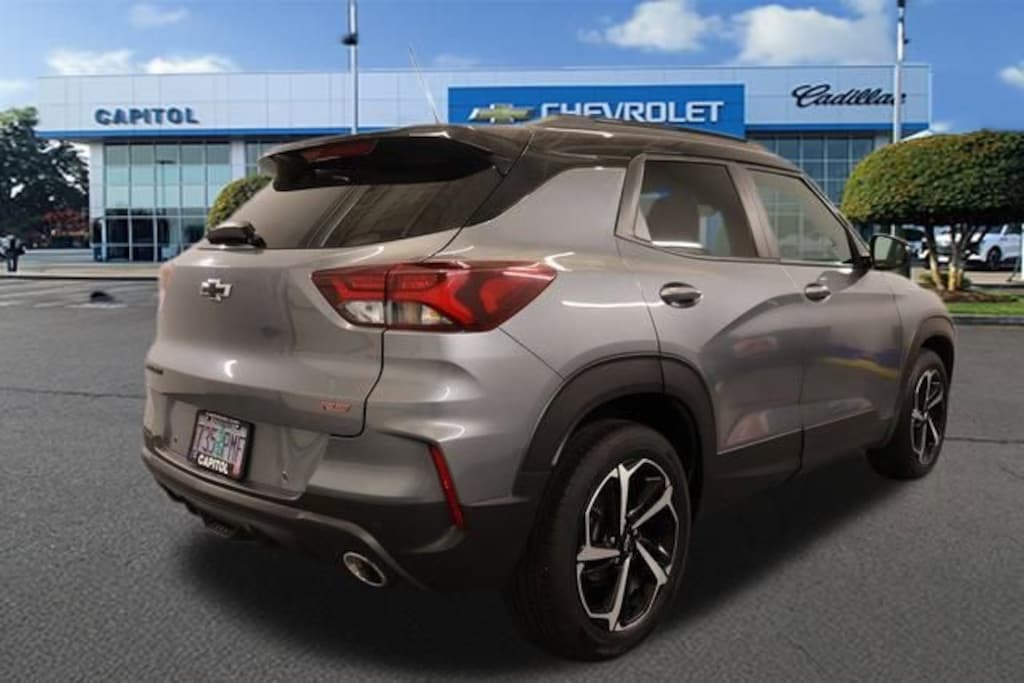 We Buy cars- Fast, Fair and Easy This 2021 Satin Steel Metallic Chevrolet TrailBlazer RS FWD is well equipped and includes these features and benefits: Convenience Package (1 Type-A & 1 Type-C USB Charging-Only Ports, 120-Volt Power Outlet, 8 Diagonal Color Touchscreen Display, Driver & Front Passenger Illuminated Vanity Mirrors, Inside Rear-View Auto-Dimming Mirror, Single-Zone Auto Climate Control Air Conditioning, SiriusXM Radio, and Cabin Humidity Sensor), Sun & Liftgate Package (Dual-Pane Panoramic Power Sunroof and Hands-Free Power Programmable Liftgate), Driver Confidence Package (Lane Change Alert w/Side Blind Zone Alert, Rear Cross Traffic Alert, and Rear Park Assist), Preferred Equipment Group 1RS, 2-Way Power Driver Lumbar Seat Adjuster, 4-Way Manual Front Passenger Seat Adjuster, 4-Wheel Disc Brakes, 5.45 Axle Ratio, 6 Speakers, 6-Speaker Audio System Feature, 8-Way Power Driver Seat Adjuster, ABS brakes, Air Conditioning, Alloy wheels, AM/FM radio, Apple CarPlay/Android Auto, Auto High-beam Headlights, Brake assist, Bumpers: body-color, Cloth w/Leatherette Seat Trim, Compass, Delay-off headlights, Driver door bin, Driver vanity mirror, Dual front impact airbags, Dual front side impact airbags, Electronic Stability Control, Emergency communication system: OnStar and Chevrolet connected services capable, Exterior Parking Camera Rear, Flat-Folding Front Passenger Seatback, Front anti-roll bar, Front Bucket Seats, Front Center Armrest, Front fog lights, Front License Plate Bracket, Front reading lights, Front wheel independent suspension, Fully automatic headlights, Heated door mirrors, Heated Driver & Front Passenger Seats, Heated front seats, Illuminated entry, Knee airbag, Leather Shift Knob, Leather steering wheel, Low tire pressure warning, Mosaic Black Metallic Two-Tone Roof, Occupant sensing airbag, Overhead airbag, Overhead console, Panic alarm, Passenger door bin, Passenger vanity mirror, Power door mirrors, Power driver seat, Power steering, Power windows, Radio data system, Radio: Chevrolet Infotainment 3 System, Rear seat center armrest, Rear side impact airbag, Rear window defroster, Rear window wiper, Remote keyless entry, Ride & Handling Suspension, Roof rack: rails only, Security system, Speed control, Split folding rear seat, Spoiler, Steering wheel mounted audio controls, Tachometer, Telescoping steering wheel, Tilt steering wheel, Traction control, Trip computer, Variably intermittent wipers, Wheels: 18 High Gloss Black Machined Aluminum, and Wireless Apple CarPlay/Android Auto.