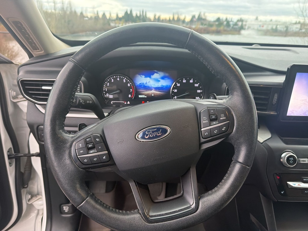 We Buy cars- Fast, Fair and Easy This 2020 White Metallic Ford Explorer XLT 4WD is well equipped and includes these features and benefits: Comfort Package (1st & 2nd Row Heated Seats and Heated Steering Wheel), Equipment Group 202A (ActiveX Captain's Chairs, LED Fog Lamps, and Remote Start System), Ford Co-Pilot360 Assist+ (Evasive Steering Assist, Intelligent Adaptive Cruise Control, and Voice-Activated Touchscreen Navigation System), 4WD, 2nd Row 35/30/35 Bench w/E-Z Entry & Armrest, 3.58 Non-Limited-Slip Rear Axle Ratio, 3rd row seats: bench, 4-Wheel Disc Brakes, 6 Speakers, ABS brakes, Air Conditioning, Alloy wheels, AM/FM radio: SiriusXM, AM/FM Stereo, Auto High-beam Headlights, Automatic temperature control, Brake assist, Bumpers: body-color, Compass, Delay-off headlights, Driver door bin, Driver vanity mirror, Dual front impact airbags, Dual front side impact airbags, Electronic Stability Control, Emergency communication system: SYNC 3 911 Assist, Exterior Parking Camera Rear, FordPass Connect, Four wheel independent suspension, Front anti-roll bar, Front Bucket Seats, Front Center Armrest, Front dual zone A/C, Front License Plate Bracket, Front reading lights, Fully automatic headlights, Heated door mirrors, Illuminated entry, Knee airbag, Leather steering wheel, Low tire pressure warning, Occupant sensing airbag, Outside temperature display, Overhead airbag, Overhead console, Panic alarm, Passenger door bin, Passenger vanity mirror, Power door mirrors, Power driver seat, Power Liftgate, Power passenger seat, Power steering, Power windows, Rear air conditioning, Rear anti-roll bar, Rear reading lights, Rear window defroster, Rear window wiper, Remote keyless entry, Roof rack: rails only, Security system, Speed control, Speed-sensing steering, Speed-Sensitive Wipers, Split folding rear seat, Spoiler, Steering wheel mounted audio controls, SYNC 3 Communications & Entertainment System, SYNC 3/Apple CarPlay/Android Auto, Tachometer, Telescoping steering wheel, Tilt steering wheel, Traction control, Trip computer, Unique Cloth Captain's Chairs, Variably intermittent wipers, and Wheels: 18" 5-Spoke Sparkle Silver-Painted Alum. 4WD, 1st & 2nd Row Heated Seats, ActiveX Captain's Chairs, Comfort Package, Equipment Group 202A, Heated Steering Wheel, LED Fog Lamps, Remote Start System.