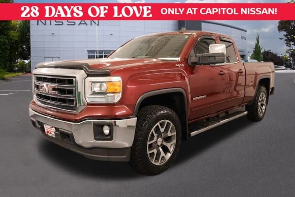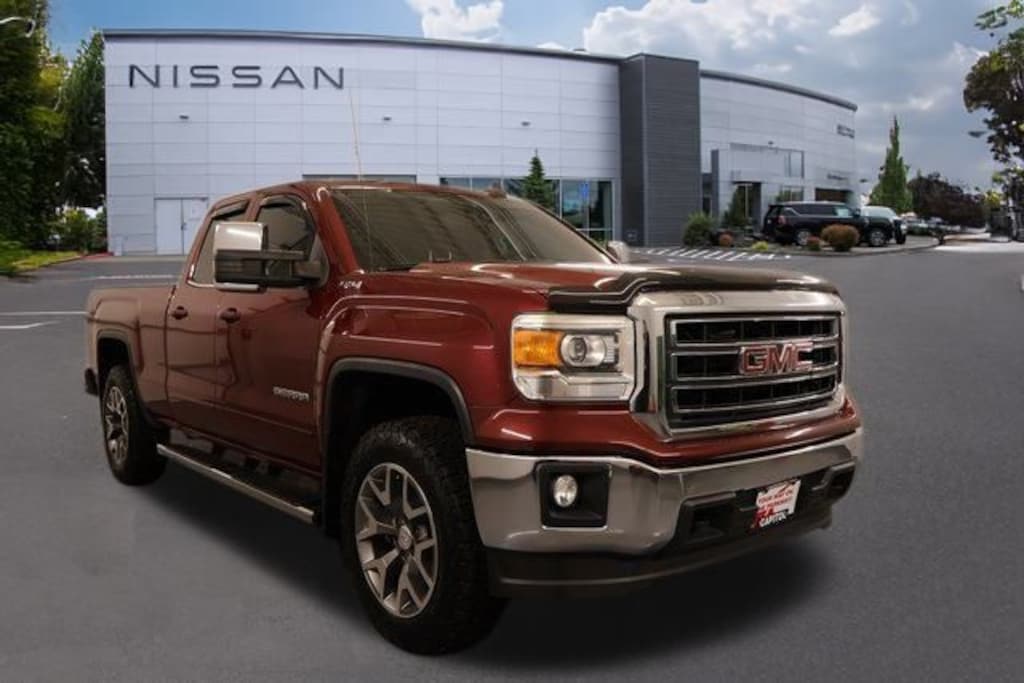 We Buy cars- Fast, Fair and Easy This 2015 Sonoma Red Metallic GMC Sierra 1500 SLE 4WD is well equipped and includes these features and benefits: 6-Speed Automatic Electronic with Overdrive, 4WD, Jet Black Cloth, 150 Amp Alternator, 4-Wheel Disc Brakes, 4.2" Diagonal Color Display Driver Info Center, 40/20/40 Front Split Bench Seat, 6 Speakers, ABS brakes, Air Conditioning, Alloy wheels, AM/FM radio: SiriusXM, Body Color Bodyside Moldings, Body Color Door Handles, Body Color Power-Adjustable Heated Outside Mirrors, Body-Color Mirror Caps, Bodyside moldings, Brake assist, Bumpers: chrome, CD player, Chrome Front Bumper, Chrome Grille Surround, Chrome Rear Bumper, Cloth Seat Trim, Color-Keyed Carpeting w/Rubberized Vinyl Floor Mats, Compass, Deep-Tinted Glass, Delay-off headlights, Driver & Front Passenger Illuminated Vanity Mirrors, Driver door bin, Driver vanity mirror, Dual front impact airbags, Dual front side impact airbags, Electronic Autotrac Transfer Case, Electronic Stability Control, Emergency communication system: OnStar Directions & Connections, Exterior Parking Camera Rear, EZ Lift & Lower Tailgate, Front anti-roll bar, Front Center Armrest w/Storage, Front Frame-Mounted Black Recovery Hooks, Front reading lights, Front wheel independent suspension, Fully automatic headlights, Heated door mirrors, Heavy Duty Suspension, Heavy-Duty Rear Locking Differential, Illuminated entry, Leather Wrapped Steering Wheel w/Cruise Controls, LED Cargo Box Lighting, Low tire pressure warning, Manual Tilt Wheel Steering Column, Occupant sensing airbag, OnStar 6 Months Directions & Connections Plan, OnStar w/4G LTE, Outside temperature display, Overhead airbag, Overhead console, Panic alarm, Passenger door bin, Passenger vanity mirror, Power door mirrors, Power steering, Power windows, Power Windows w/Driver Express Up & Down, Premium audio system: IntelliLink, Radio data system, Radio: AM/FM Stereo w/8" Diagonal Color Touch Screen, Rear 60/40 Folding Bench Seat (Folds Up), Rear Bumper Cornersteps, Rear reading lights, Rear seat center armrest, Rear step bumper, Rear Vision Camera w/Dynamic Guide Lines, Rear Wheelhouse Liners, Remote Keyless Entry, Remote keyless entry, Single Slot CD/MP3 Player, Single-Zone Air Conditioning, SiriusXM Satellite Radio, Speed control, Speed-sensing steering, Split folding rear seat, Steering Wheel Audio Controls, Steering wheel mounted audio controls, Tachometer, Tilt steering wheel, Traction control, Trip computer, Variably intermittent wipers, Voltmeter, and Wheels: 17" x 8" Bright Machined Aluminum. 6-Speed Automatic Electronic with Overdrive, 4WD, Jet Black Cloth.