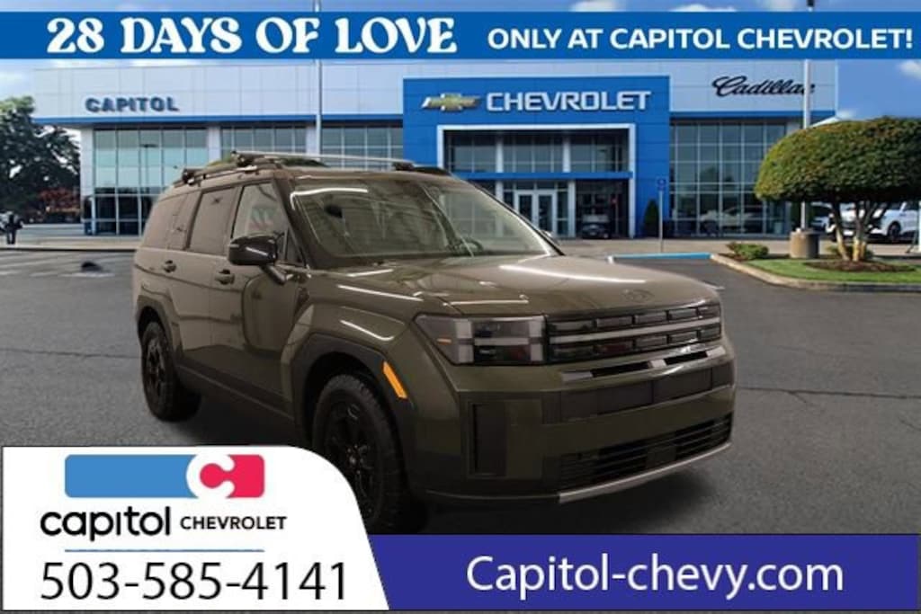 We Buy cars- Fast, Fair and Easy This 2025 Rockwood Green Hyundai Santa Fe XRT AWD is well equipped and includes these features and benefits: Option Group 01, 3rd row seats: bench, 4-Wheel Disc Brakes, 6 Speakers, ABS brakes, Air Conditioning, All Season Fitted Liners, Alloy wheels, AM/FM radio: SiriusXM, Apple CarPlay & Android Auto, Auto High-beam Headlights, Automatic temperature control, Brake assist, Bumpers: body-color, Cargo Cover, Cargo Net, Cargo Organizer, Cargo Tray, Delay-off headlights, Driver door bin, Driver vanity mirror, Dual front impact airbags, Dual front side impact airbags, Electronic Stability Control, Emergency communication system, Exterior Parking Camera Rear, First Aid Kit, Four wheel independent suspension, Front anti-roll bar, Front Bucket Seats, Front Center Armrest, Front dual zone A/C, Front reading lights, Fully automatic headlights, H-Tex Leatherette Seat Trim, Heated door mirrors, Heated Front Bucket Seats, Heated front seats, Illuminated entry, Knee airbag, Leather steering wheel, Low tire pressure warning, Navigation System, Occupant sensing airbag, Outside temperature display, Overhead airbag, Overhead console, Panic alarm, Passenger door bin, Passenger vanity mirror, Power door mirrors, Power driver seat, Power Liftgate, Power moonroof, Power steering, Power windows, Radio: AM/FM/HD Display Audio, Rear anti-roll bar, Rear seat center armrest, Rear side impact airbag, Rear window defroster, Rear window wiper, Remote keyless entry, Security system, Speed control, Speed-sensing steering, Split folding rear seat, Spoiler, Steering wheel mounted audio controls, Tachometer, Telescoping steering wheel, Tilt steering wheel, Traction control, Trip computer, Turn signal indicator mirrors, Variably intermittent wipers, Wheel Locks, and Wheels: 18 x 7.5J Dark Alloy.