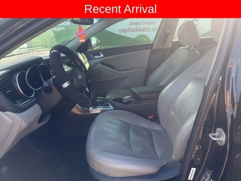 Discover the remarkable 2014 Kia Optima EX, a sophisticated and dynamic sedan that seamlessly blends style, comfort, and cutting-edge technology. This meticulously maintained vehicle is the perfect companion for the discerning driver seeking a premium driving experience.- Rear Bumper Applique- Cargo Mat- EX Premium Package (Includes Heated & Ventilated Front Seats, Power Folding Outside Mirrors, Radio: UVO eService, AM/FM/CD/MP3 player, Infinity sound system w/8 speakers, Rear Camera Display, Driver Seat Memory, 4-Way Power Front Passenger Seat, Heated Steering Wheel, Panoramic Sunroof, Gloss Black B-Pillar, Heated Rear Outboard Seats, HD Radio, Infinity Premium Sound System w/8 Speakers, subwoofer and external amplifier)- EX Technology Package (Includes Blind Spot Detection w/Cross-Traffic Alert, back-up warning system, Navigation System, SIRIUS Traffic, Rear Camera Display)Powered by a robust 2.4L I4 DGI DOHC engine and a smooth 6-Speed Automatic with Sportmatic transmission, the 2014 Kia Optima EX delivers an impressive balance of performance and efficiency, with an EPA-estimated 23 city/34 highway mpg. The sleek and sophisticated black exterior exudes a commanding presence, while the well-appointed interior offers unparalleled comfort and convenience.Indulge in the luxurious features that set the Optima EX apart, including the Panoramic Sunroof, Heated and Ventilated Front Seats, Heated Steering Wheel, and Infinity Premium Sound System. Experience the convenience of the Rear Camera Display, Blind Spot Detection with Cross-Traffic Alert, and the advanced Navigation System, all seamlessly integrated to enhance your driving experience.Whether you're commuting to the office, embarking on a road trip, or simply enjoying the open road, the 2014 Kia Optima EX is the perfect companion. Meticulously maintained and well-equipped, this sedan is a testament to Kia's commitment to quality and innovation.We invite you to schedule a test drive and discover the exceptional value and driving dynamics of the 2014 Kia Optima EX. Experience the difference for yourself and let us demonstrate how this exceptional vehicle can enhance your daily driving and elevate your ownership experience.
