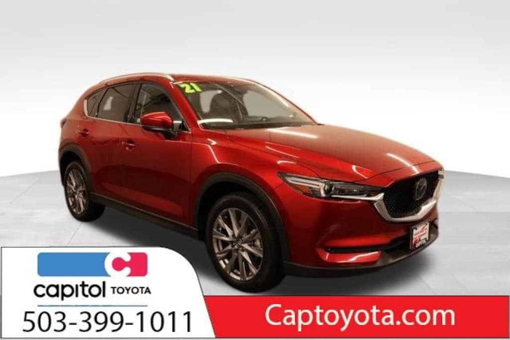 We Buy cars- Fast, Fair and Easy This 2021 Soul Red Crystal Metallic Mazda CX-5 Grand Touring Reserve AWD is well equipped and includes these features and benefits: Power moonroof, 10 Speakers, 4-Wheel Disc Brakes, 4.411 Axle Ratio, ABS brakes, Air Conditioning, Alloy wheels, AM/FM radio: SiriusXM, AppLink/Apple CarPlay and Android Auto, Auto High-beam Headlights, Auto-dimming Rear-View mirror, Automatic temperature control, Bose 10-Speaker Premium Audio Sound System, Brake assist, Bumpers: body-color, Delay-off headlights, Driver door bin, Driver vanity mirror, Dual front impact airbags, Dual front side impact airbags, Electronic Stability Control, Emergency communication system: MAZDA CONNECT, Exterior Parking Camera Rear, Four wheel independent suspension, Front anti-roll bar, Front Bucket Seats, Front Center Armrest, Front dual zone A/C, Front fog lights, Front reading lights, Fully automatic headlights, Garage door transmitter: HomeLink, Heads-Up Display, Heated door mirrors, Heated front seats, Heated rear seats, Heated steering wheel, Heated/Ventilated Front Bucket Seats, Illuminated entry, Leather Seat Trim, Leather Shift Knob, Low tire pressure warning, Memory seat, Occupant sensing airbag, Outside temperature display, Overhead airbag, Overhead console, Panic alarm, Passenger door bin, Passenger vanity mirror, Power door mirrors, Power driver seat, Power Liftgate, Power passenger seat, Power steering, Power windows, Radio data system, Radio: AM/FM/HD Audio System, Rain sensing wipers, Rear anti-roll bar, Rear reading lights, Rear seat center armrest, Rear window defroster, Rear window wiper, Remote keyless entry, Roof Rack Side Rails, Soul Red Crystal Metallic Paint, Speed control, Speed-sensing steering, Split folding rear seat, Spoiler, Steering wheel mounted audio controls, Tachometer, Telescoping steering wheel, Tilt steering wheel, Traction control, Trip computer, Turn signal indicator mirrors, Variably intermittent wipers, Ventilated front seats, and Wheels: 19 x 7J Aluminum Alloy.