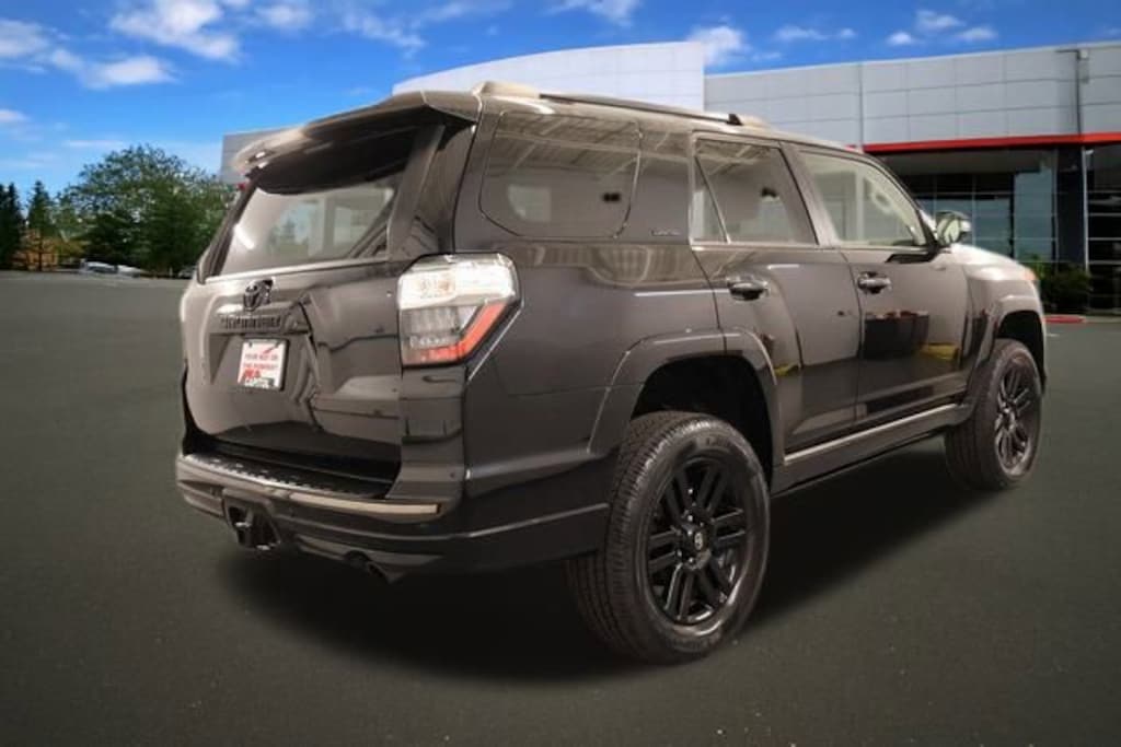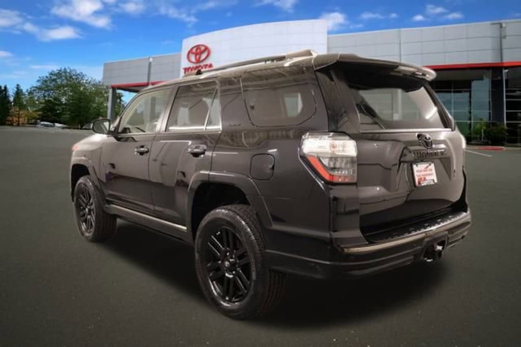 We Buy cars- Fast, Fair and Easy This 2021 Midnight Black Metallic Toyota 4Runner Nightshade 4WD is well equipped and includes these features and benefits: 15 Speakers, 3.727 Axle Ratio, 4-Wheel Disc Brakes, ABS brakes, Air Conditioning, Alloy wheels, AM/FM radio: SiriusXM, Anti-whiplash front head restraints, Apple CarPlay/Android Auto, Auto High-beam Headlights, Auto-dimming Rear-View mirror, Automatic temperature control, Black Power Heated Mirrors, Black Roof Rails, Brake assist, Bumpers: body-color, Compass, Delay-off headlights, Driver door bin, Driver vanity mirror, Dual front impact airbags, Dual front side impact airbags, Electronic Stability Control, Emergency communication system: Safety Connect with 1-year trial, Exterior Parking Camera Rear, Front anti-roll bar, Front Bucket Seats, Front Center Armrest, Front dual zone A/C, Front fog lights, Front reading lights, Front wheel independent suspension, Fully automatic headlights, Garage Door Opener, Garage door transmitter: HomeLink, Heated door mirrors, Heated front seats, Heated/Ventilated Front Bucket Seats, Illuminated entry, Knee airbag, Low tire pressure warning, Memory seat, Moonroof w/Tilt Up & Slide, Navigation System, Nightshade Leather Seat Trim, Occupant sensing airbag, Outside temperature display, Overhead airbag, Overhead console, Panic alarm, Passenger door bin, Passenger vanity mirror, Power door mirrors, Power driver seat, Power moonroof, Power passenger seat, Power steering, Power windows, Radio: Premium JBL Audio, Rear anti-roll bar, Rear seat center armrest, Rear window defroster, Rear window wiper, Remote keyless entry, Right & Left Individual Air Conditioner, Roof rack: rails only, Security system, Speed control, Speed-sensing steering, Split folding rear seat, Spoiler, Steering wheel mounted audio controls, Tachometer, Telescoping steering wheel, Tilt steering wheel, Traction control, Trip computer, Turn signal indicator mirrors, Variably intermittent wipers, Ventilated front seats, and Wheels: 20 Black Alloy.