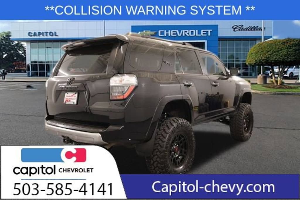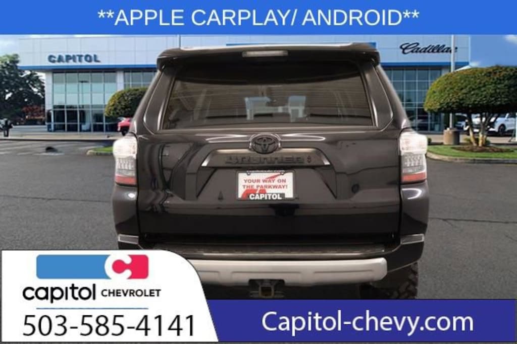 We Buy cars- Fast, Fair and Easy This 2021 Midnight Black Metallic Toyota 4Runner TRD Off-Road Premium 4WD is well equipped and includes these features and benefits: 3.727 Axle Ratio, 4-Wheel Disc Brakes, 8 Speakers, ABS brakes, Air Conditioning, Alloy wheels, AM/FM radio: SiriusXM, Anti-whiplash front head restraints, Apple CarPlay/Android Auto, Auto High-beam Headlights, Auto-dimming Rear-View mirror, Black Roof Rails, Body Color Heated Mirrors, Brake assist, Bumpers: body-color, Compass, Driver door bin, Driver vanity mirror, Dual front impact airbags, Dual front side impact airbags, Electronic Stability Control, Emergency communication system: Safety Connect with 1-year trial, Exterior Parking Camera Rear, Front anti-roll bar, Front Bucket Seats, Front Center Armrest, Front fog lights, Front reading lights, Front wheel independent suspension, Garage Door Opener, Garage door transmitter: HomeLink, Heated door mirrors, Heated Front Bucket Seats, Heated front seats, Illuminated entry, Knee airbag, Leather Shift Knob, Low tire pressure warning, Occupant sensing airbag, Outside temperature display, Overhead airbag, Overhead console, Panic alarm, Passenger door bin, Passenger vanity mirror, Power door mirrors, Power driver seat, Power passenger seat, Power steering, Power windows, Radio: Premium Audio w/Dynamic Navigation, Rear anti-roll bar, Rear seat center armrest, Rear window defroster, Rear window wiper, Remote keyless entry, Roof rack: rails only, Security system, Softex Synthetic Leather Seat Trim, Speed control, Speed-sensing steering, Split folding rear seat, Spoiler, Steering wheel mounted audio controls, Tachometer, Telescoping steering wheel, Tilt steering wheel, Traction control, Trip computer, Turn signal indicator mirrors, Variably intermittent wipers, and Wheels: 17 x 7.5 7-Spoke Unique Off-Road Alloy.