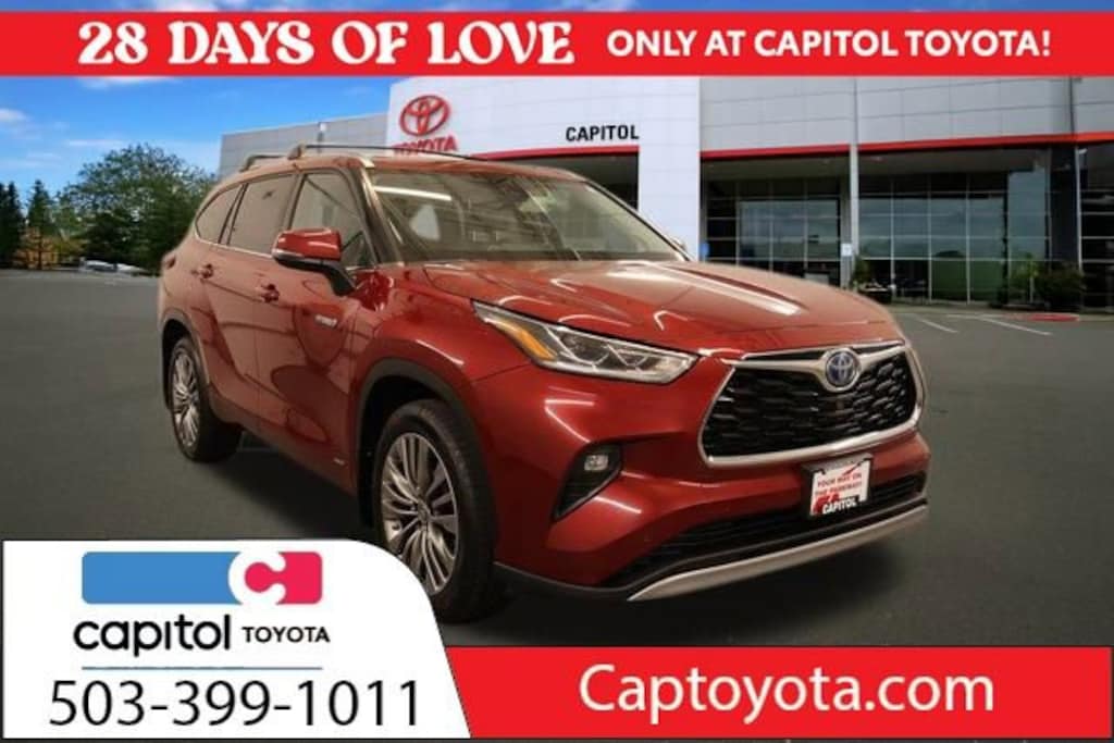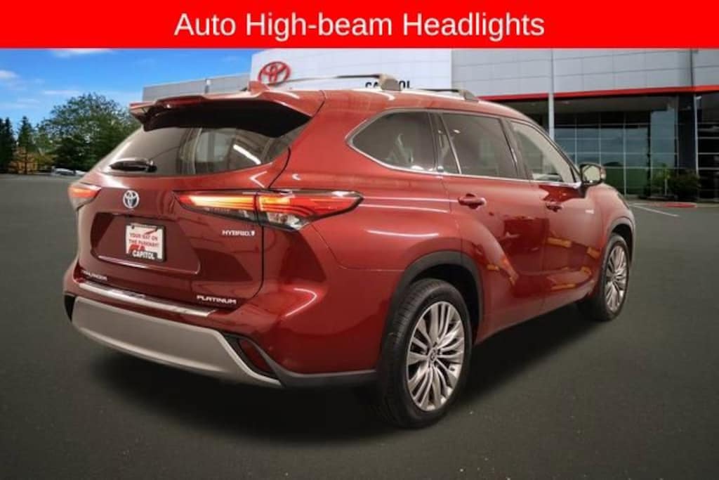 We Buy cars- Fast, Fair and Easy This 2021 Ruby Flare Pearl Toyota Highlander Hybrid Platinum AWD is well equipped and includes these features and benefits: Apple CarPlay/Android Auto, Auto High-beam Headlights, Heated & Ventilated Front Bucket Seats, Rain sensing wipers, 11 Speakers, 3rd row seats: split-bench, 4-Wheel Disc Brakes, ABS brakes, Air Conditioning, Alloy wheels, AM/FM radio: SiriusXM, Auto-dimming Rear-View mirror, Automatic temperature control, Axle Ratio TBD, Brake assist, Bumpers: body-color, Delay-off headlights, Driver door bin, Driver vanity mirror, Dual front impact airbags, Dual front side impact airbags, Electronic Rear-View Mirror, Electronic Stability Control, Emergency communication system: Safety Connect with 1-year trial, Four wheel independent suspension, Front anti-roll bar, Front Bucket Seats, Front Center Armrest, Front dual zone A/C, Front fog lights, Front reading lights, Fully automatic headlights, Garage door transmitter: HomeLink, Heads-Up Display, Heated door mirrors, Heated front seats, Heated rear seats, Heated steering wheel, High Grade LED, Illuminated entry, Knee airbag, Leather Seat Trim, Leather Shift Knob, Low tire pressure warning, Memory seat, Navigation system: Dynamic Navigation (3-year trial), Occupant sensing airbag, Outside temperature display, Overhead airbag, Overhead console, Panic alarm, Panoramic Moonroof, Panoramic View Monitor, Passenger door bin, Passenger vanity mirror, Power door mirrors, Power driver seat, Power Liftgate, Power moonroof, Power passenger seat, Power steering, Power windows, Radio: JBL Premium Audio w/Navigation System, Rear air conditioning, Rear anti-roll bar, Rear reading lights, Rear window defroster, Rear window wiper, Reclining 3rd row seat, Remote keyless entry, Roof rack: rails only, Security system, Speed control, Speed-sensing steering, Split folding rear seat, Spoiler, Steering wheel mounted audio controls, Telescoping steering wheel, Tilt steering wheel, Traction control, Trip computer, Turn signal indicator mirrors, Variably intermittent wipers, Ventilated front seats, and Wheels: 20 Platinum Alloy.