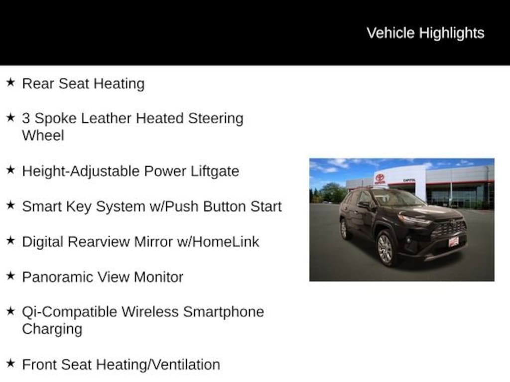 Under the hood, the 2.5L 4-Cylinder DOHC Dual VVT-i engine, paired with an 8-Speed Automatic transmission and All-Wheel Drive, provides a smooth and capable ride. With an EPA-estimated 25 MPG in the city and 33 MPG on the highway, this RAV4 delivers impressive fuel efficiency to go along with its impressive performance.